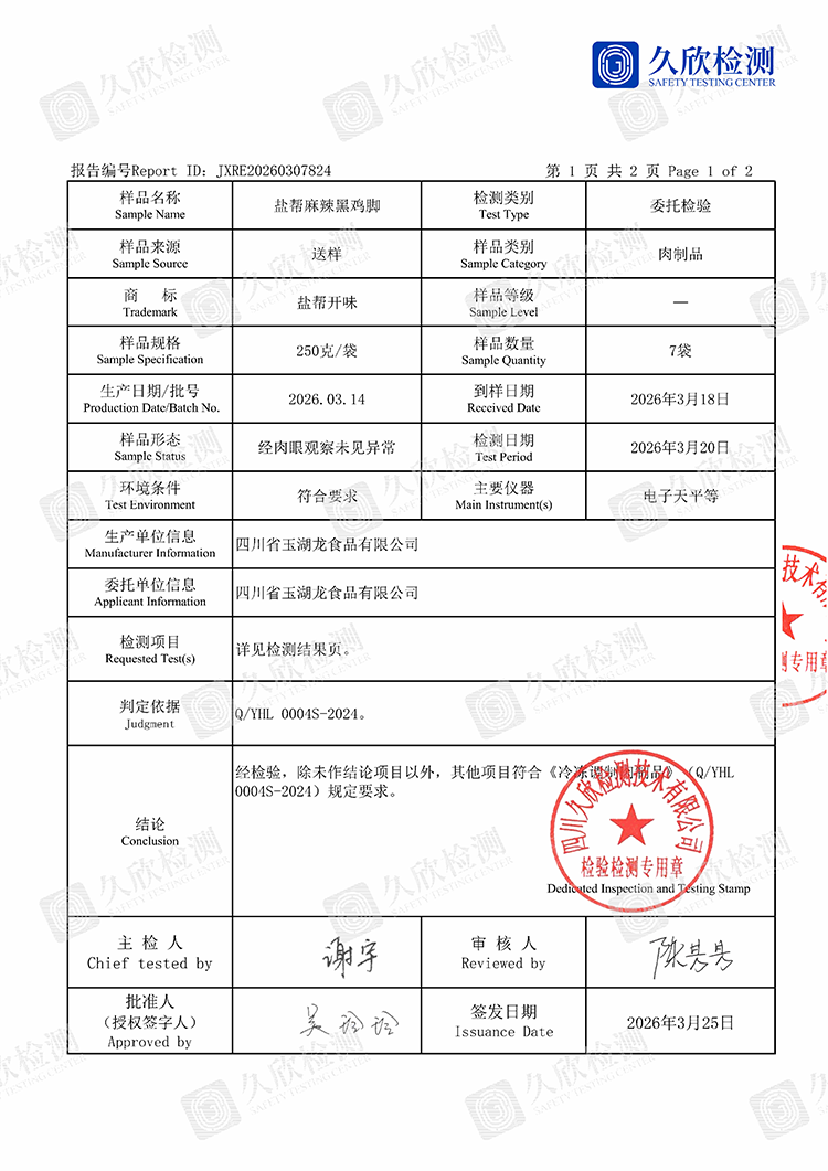 首頁 >> 質(zhì)檢報告 >>質(zhì)檢報告 >> 鹽幫麻辣黑雞腳(鹽幫開味)2026.03.25