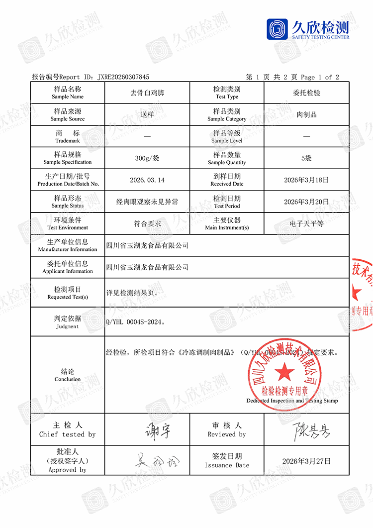 首頁 >> 質(zhì)檢報告 >>質(zhì)檢報告 >> 去骨白雞腳2026.03.27