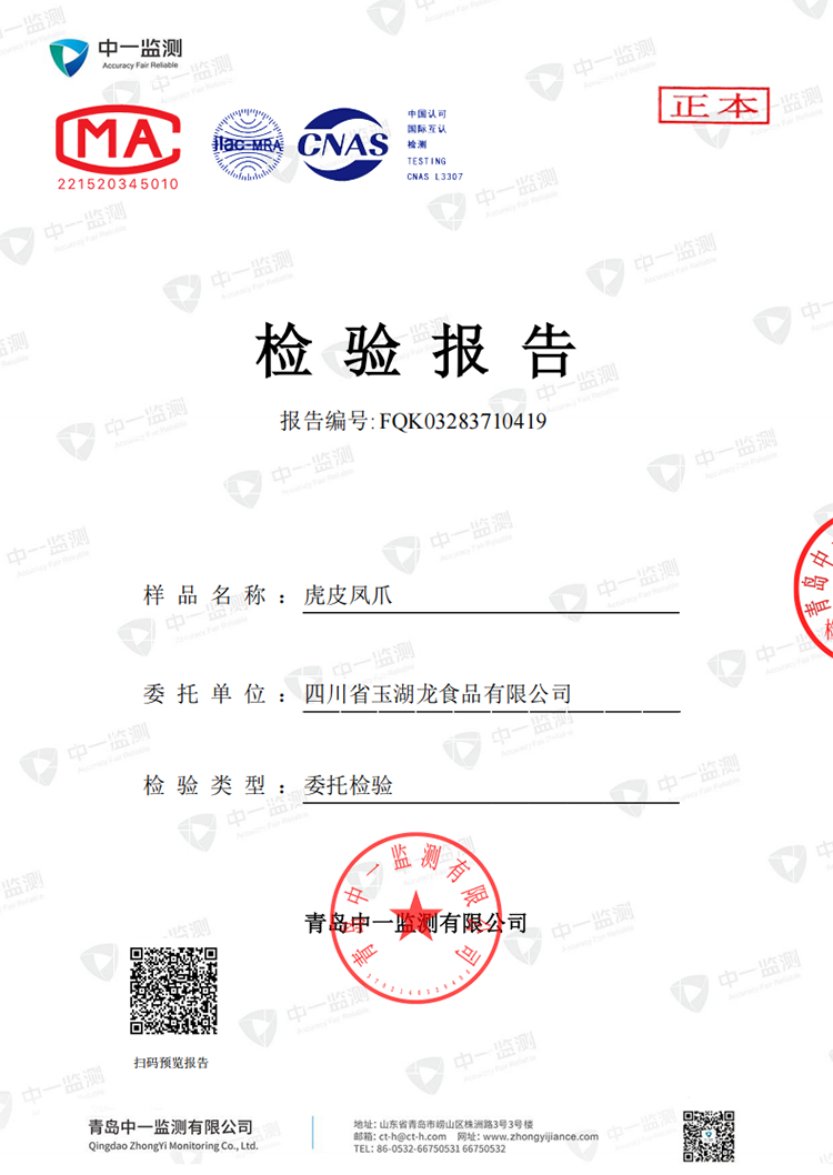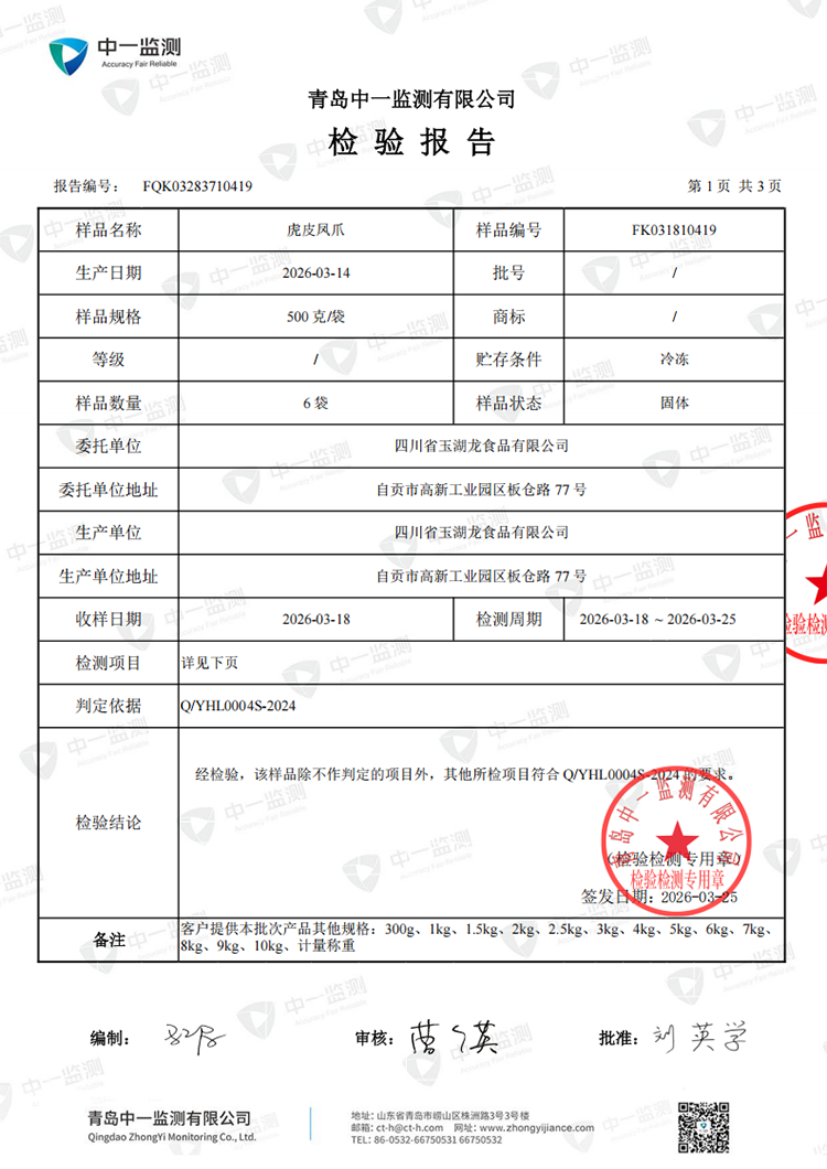 首頁 >> 質(zhì)檢報告 >>質(zhì)檢報告 >> 虎皮鳳爪(全檢)2026.03.25