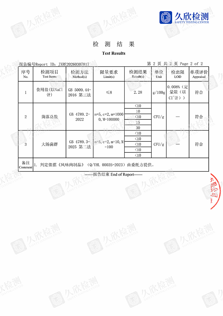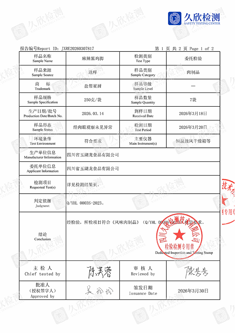 首頁 >> 質(zhì)檢報(bào)告 >>質(zhì)檢報(bào)告 >> 麻辣黑雞腳(鹽幫星廚)2026.03.30