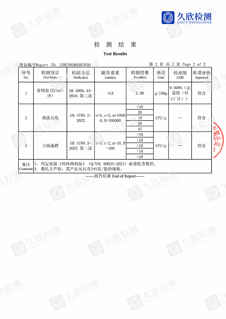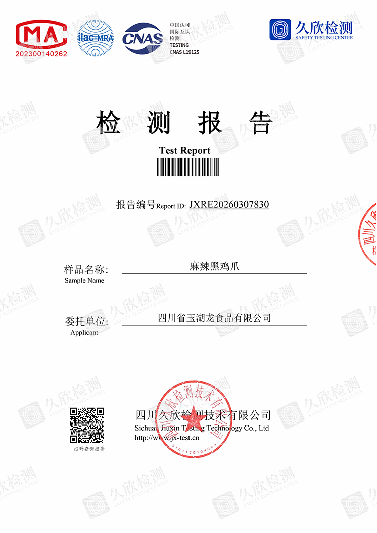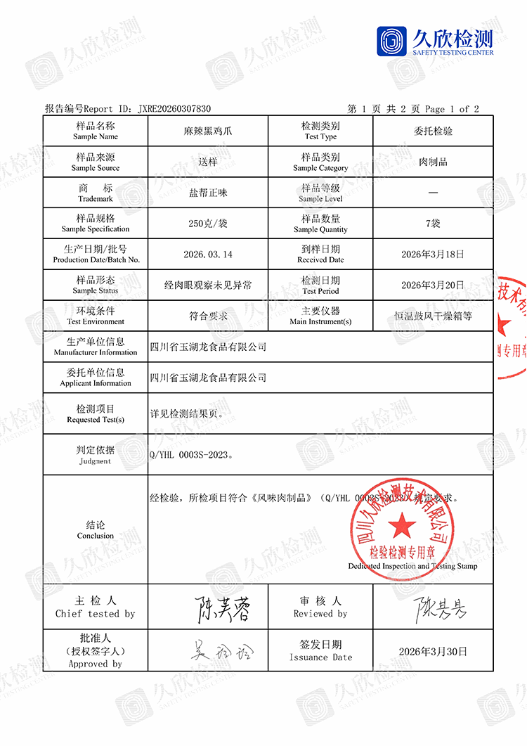 首頁 >> 質(zhì)檢報告 >>質(zhì)檢報告 >> 麻辣黑雞爪(鹽幫正味)2026.03.30